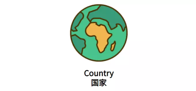画出需要分类的主题,例如以"Country"(国家)为主题,对所学的各个国家的英文名字进行分类。